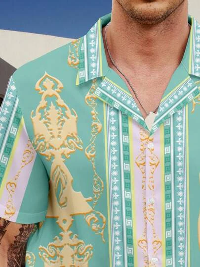 Manfinity Chillmode Men Baroque Print Button Up Shirt