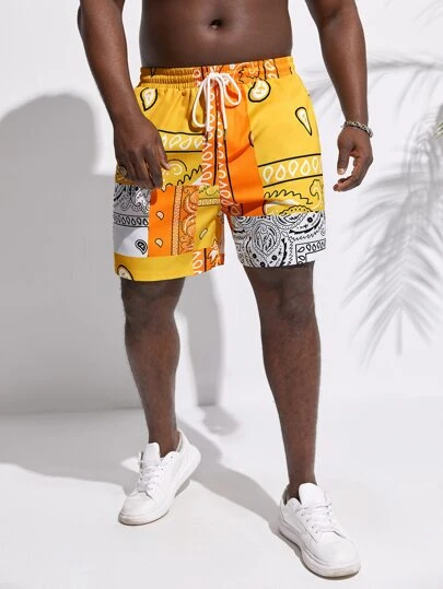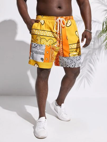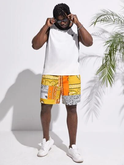 Manfinity Chillmode Men Paisley Patchwork Print Drawstring Waist Shorts
