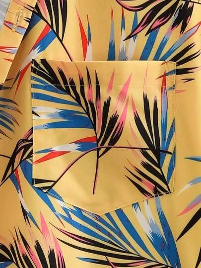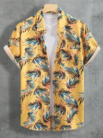 Manfinity Chillmode Men Tropical Print Shirt Without Tee