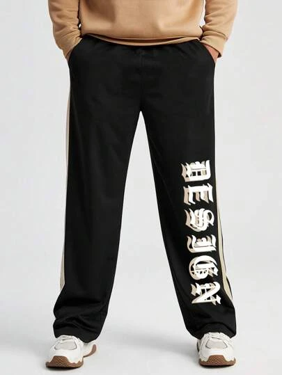 Manfinity EMRG Men Letter Graphic Contrast Side Seam Drawstring Waist Pants