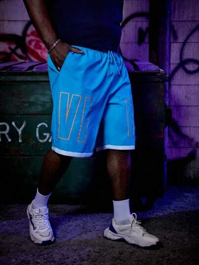 Manfinity EMRG Men Plus Letter Graphic Contrast Trim Drawstring Waist Shorts