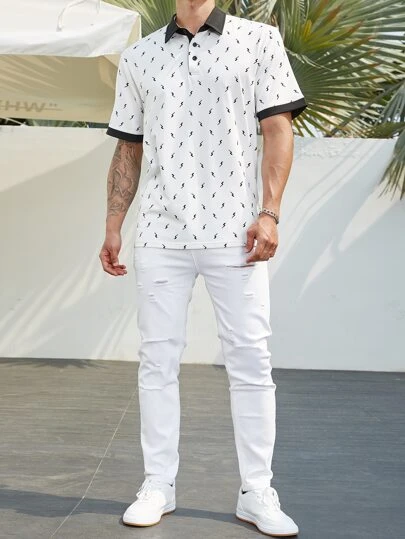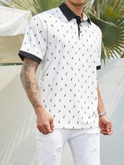 Manfinity Homme Men Allover Print Contrast Trim Polo Shirt