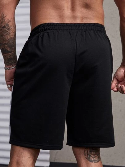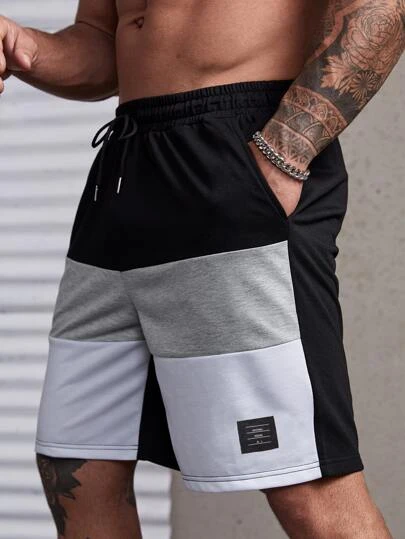 Manfinity Homme Men Color Block Letter Patched Detail Drawstring Waist Shorts