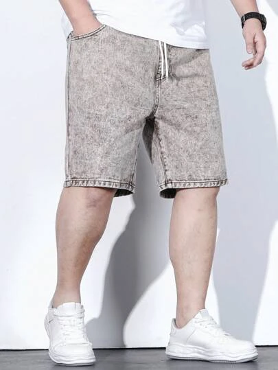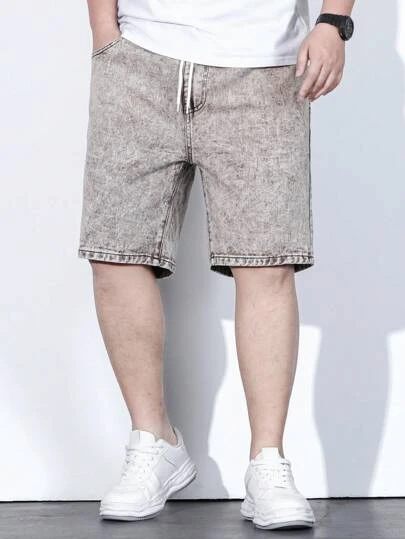 Manfinity Homme Men Cotton Drawstring Waist Denim Shorts