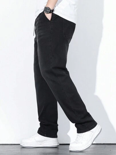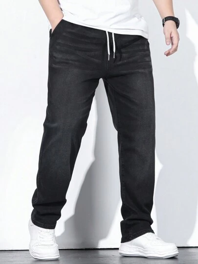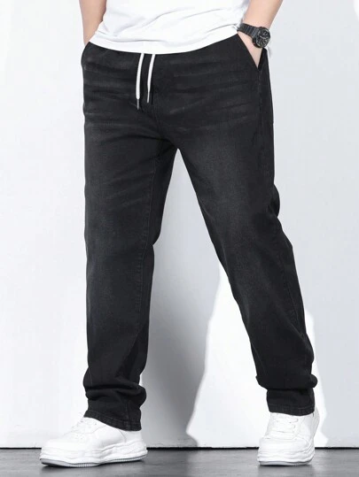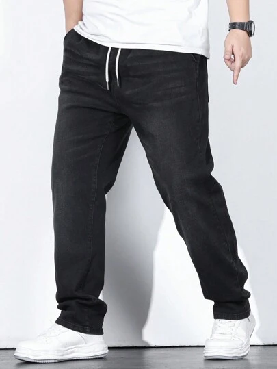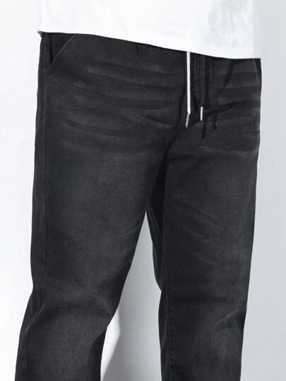 Manfinity Homme Men Cotton Drawstring Waist Slant Pocket Jeans
