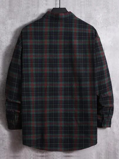 Manfinity Homme Men Cotton Plaid Print Pocket Patched Shirt
