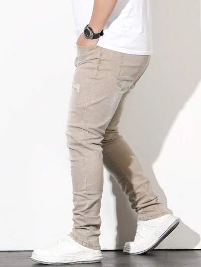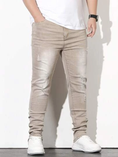 Manfinity Homme Men Cotton Ripped Frayed Bleach Wash Skinny Jeans