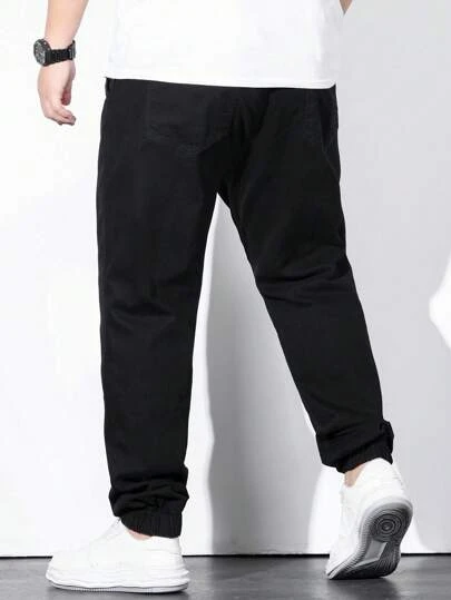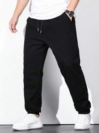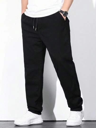 Manfinity Homme Men Cotton Solid Drawstring Waist Straight Leg Jeans