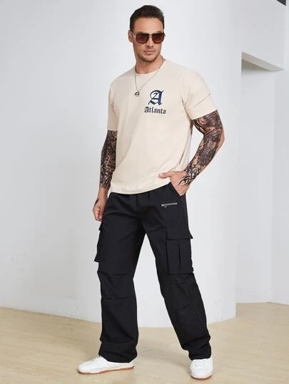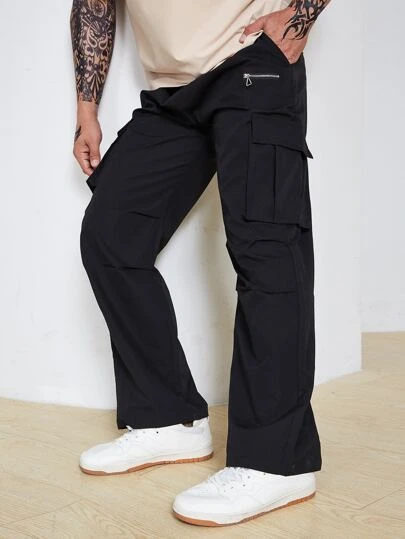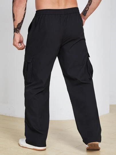 Manfinity Homme Men Drawstring Waist Flap Pocket Cargo Pants