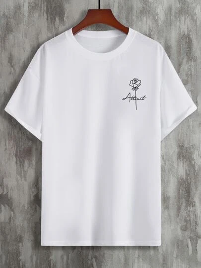 Manfinity Homme Men Floral & Letter Graphic Tee