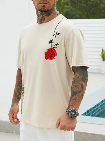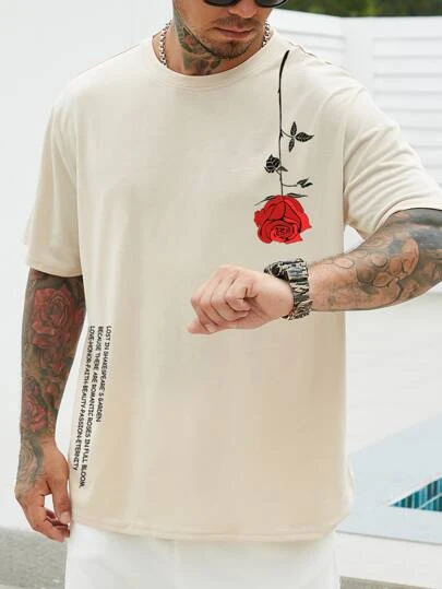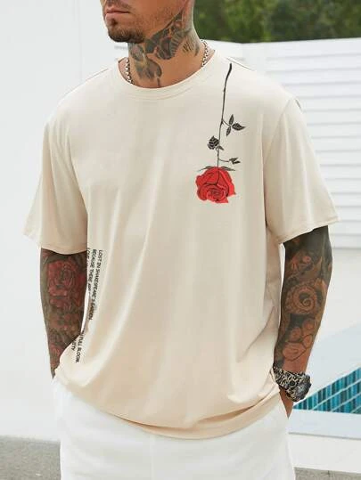 Manfinity Homme Men Floral & Slogan Graphic Tee