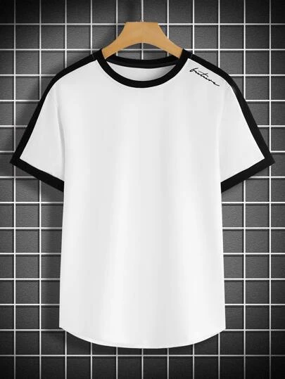 Manfinity Homme Men Letter Graphic Contrast Trim Tee