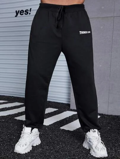 Manfinity Homme Men Letter Graphic Drawstring Waist Sweatpants