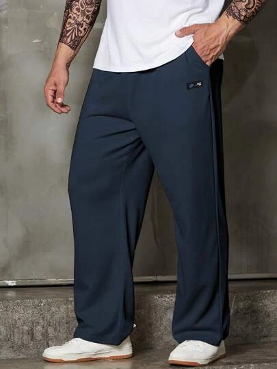 Manfinity Homme Men Letter Patched Detail Drawstring Waist Straight Leg Pants