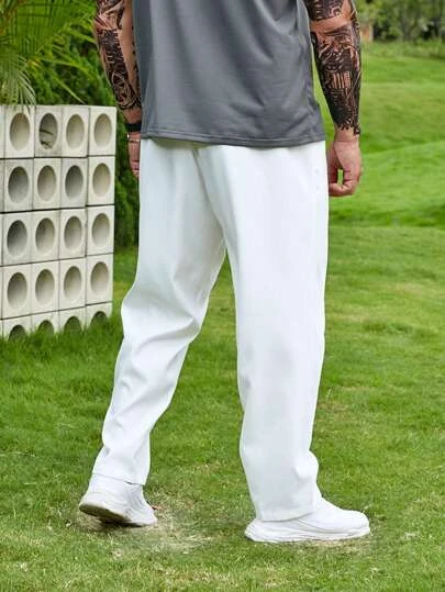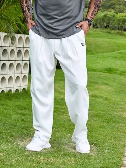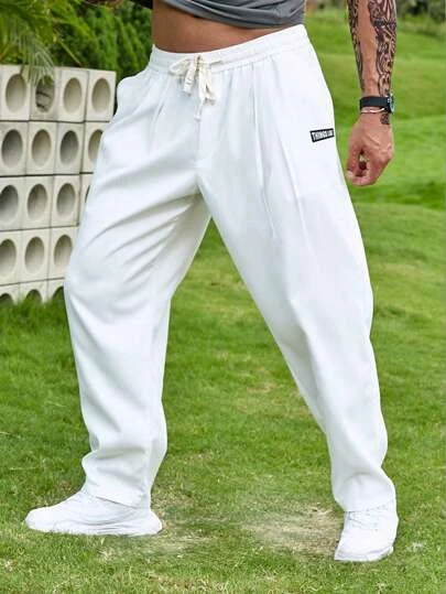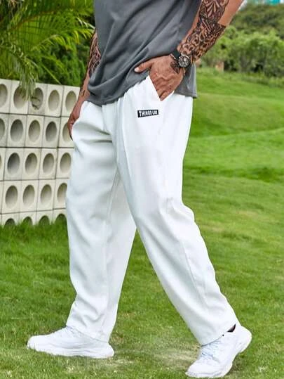 Manfinity Homme Men Letter Patched Detail Drawstring Waist Straight Leg Pants