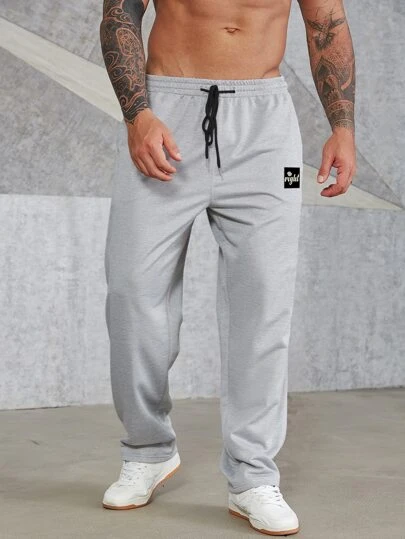 Manfinity Homme Men Slogan Patched Drawstring Waist Sweatpants