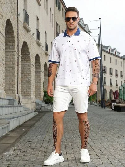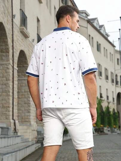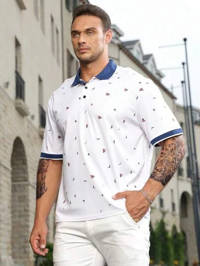 Manfinity Homme Men Plus Allover Print Contrast Trim Polo Shirt