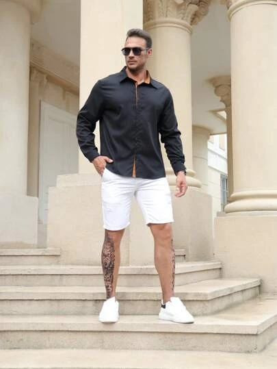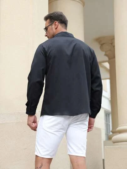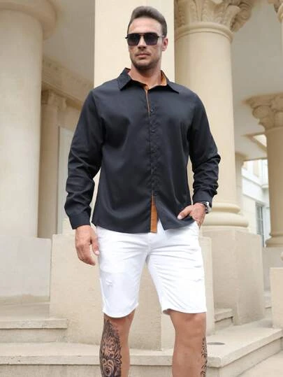 Manfinity Homme Men Plus Contrast Trim Button Up Shirt