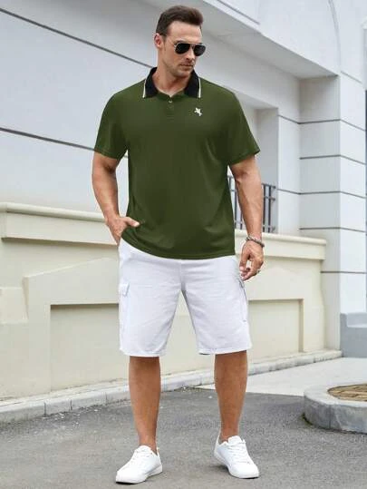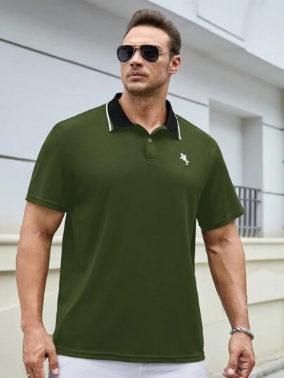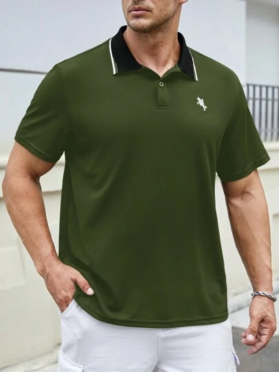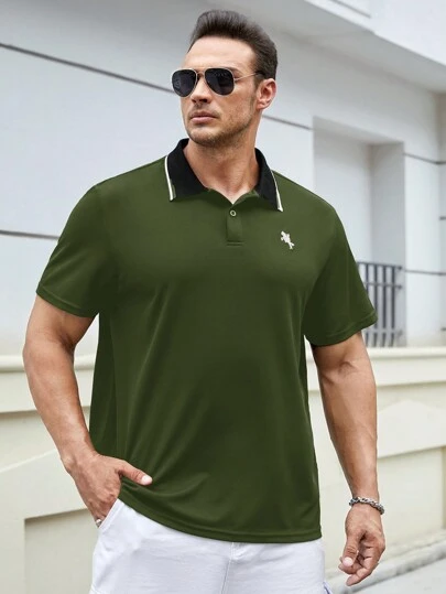 Manfinity Homme Men Plus Embroidery Horse Pattern Contrast Collar Polo Shirt