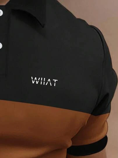 Manfinity Homme Men Plus Letter Graphic Colorblock Polo Shirt