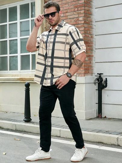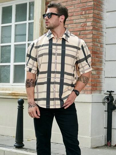 Manfinity Homme Men Plus Plaid Print Shirt