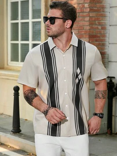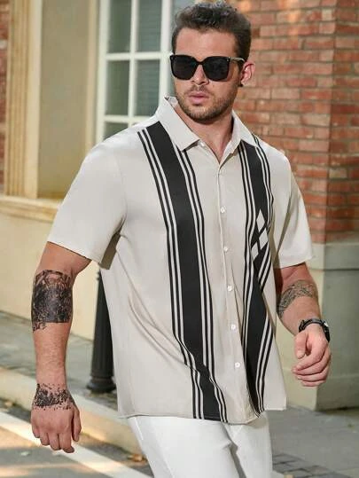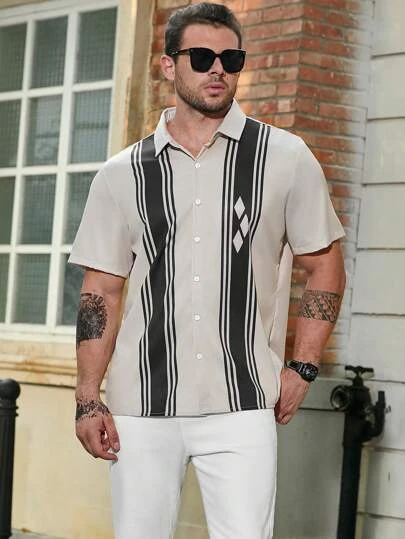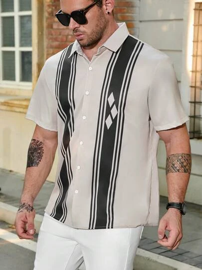 Manfinity Homme Men Plus Striped & Geo Print Shirt