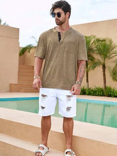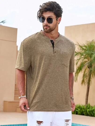 Manfinity Homme Men Solid Button Front Tee