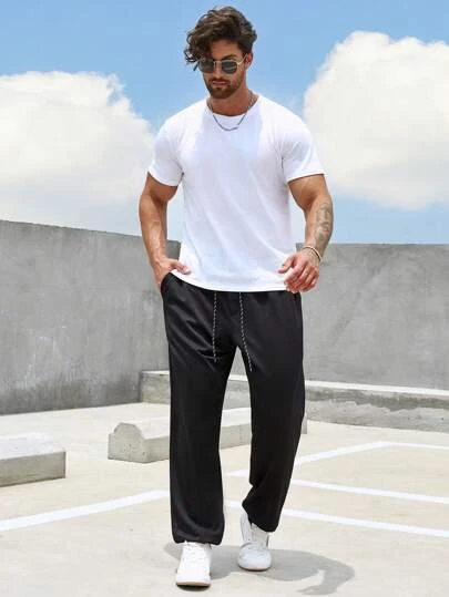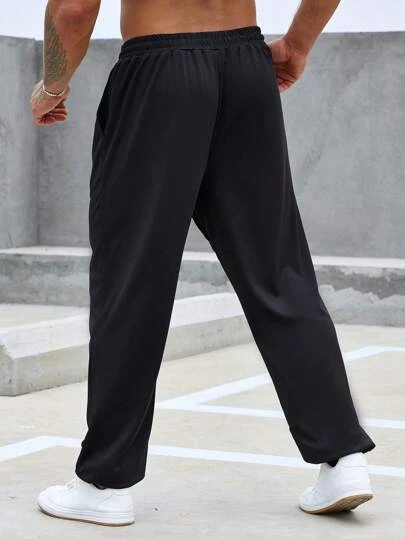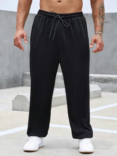 Manfinity Homme Men Solid Drawstring Waist Straight Leg Pants