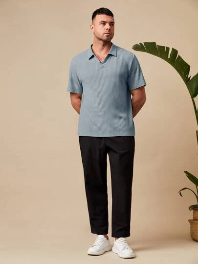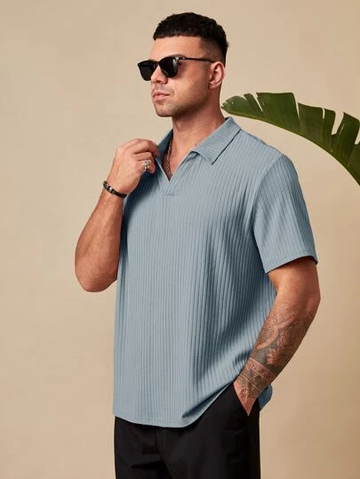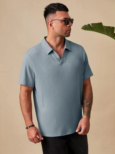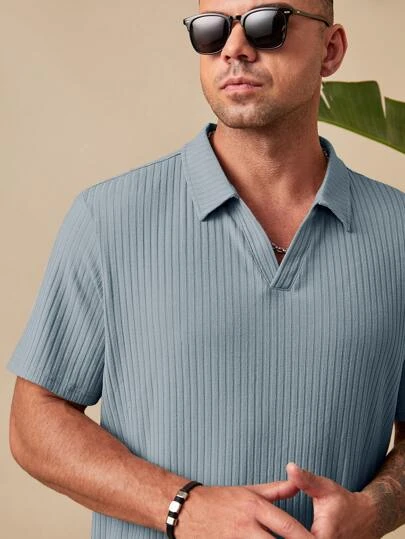 Manfinity Homme Men Solid Ribbed Knit Polo Shirt