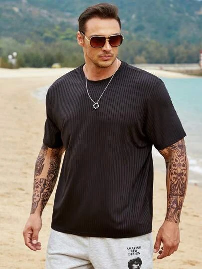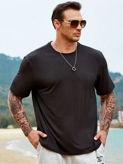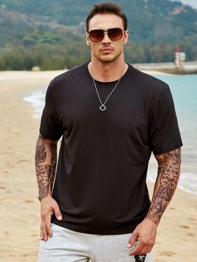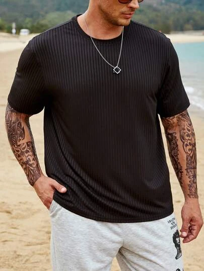 Manfinity Homme Men Solid Ribbed Knit Tee
