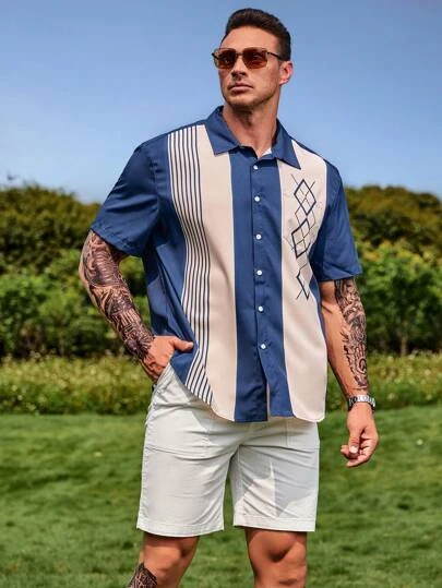 Manfinity Homme Men Striped & Geo Print Shirt