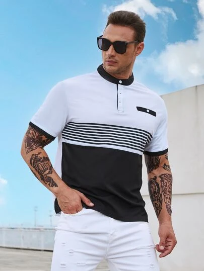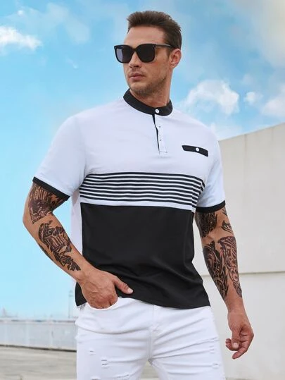 Manfinity Homme Men Striped Print Colorblock Polo Shirt