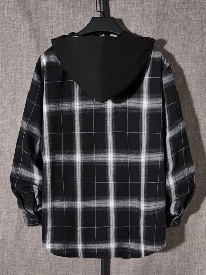 Manfinity Hypemode Men Cotton Plaid Print Hooded Shirt Without Tee