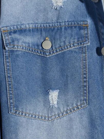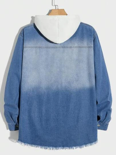 Manfinity Hypemode Men Cotton Ripped Raw Hem Denim Shirt Without Hoodie