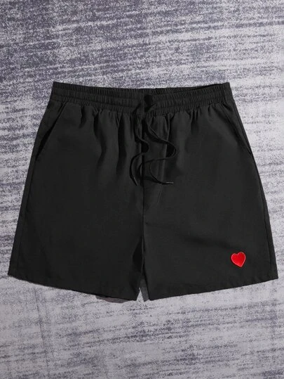 Manfinity Hypemode Men Heart Print Drawstring Waist Shorts