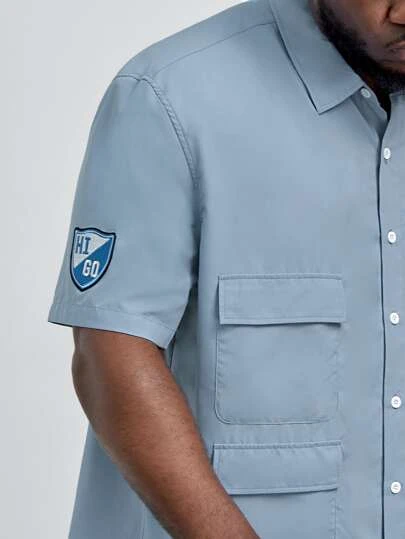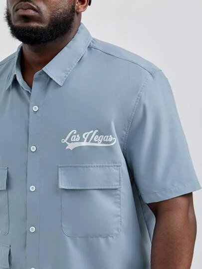 Manfinity Hypemode Men Letter Graphic Flap Pocket Shirt