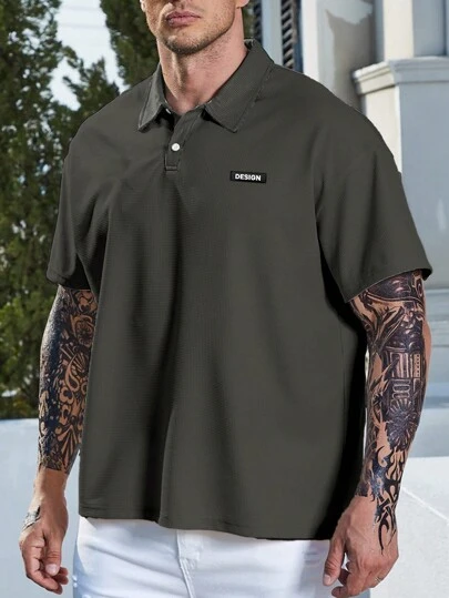 Manfinity Hypemode Men Plus Letter Patched Detail Polo Shirt