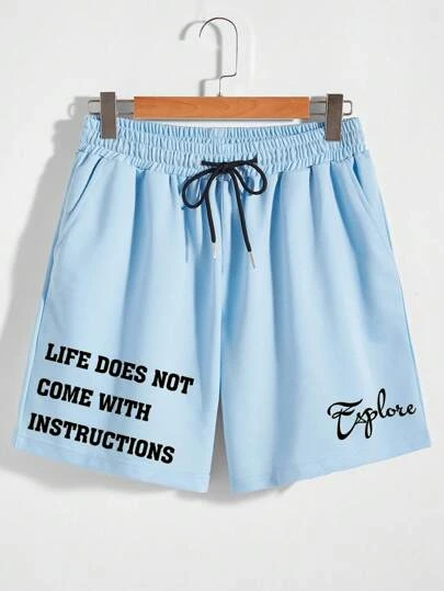 Manfinity Hypemode Men Slogan Graphic Drawstring Waist Shorts