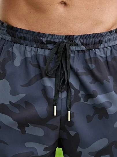 Manfinity LEGND Men Camo Print Flap Pocket Drawstring Waist Cargo Pants