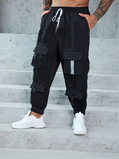 Manfinity Hypemode Men Patched Detail Flap Pocket Drawstring Waist Cargo Pants
