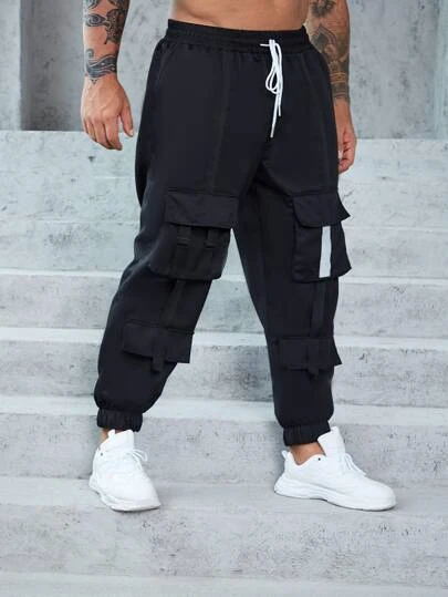 Manfinity LEGND Men Contrast Tape Flap Pocket Drawstring Waist Cargo Pants