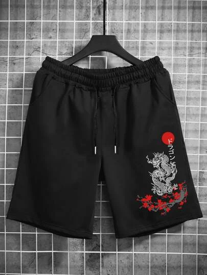 Manfinity LEGND Men Dragon & Letter Graphic Drawstring Waist Shorts
