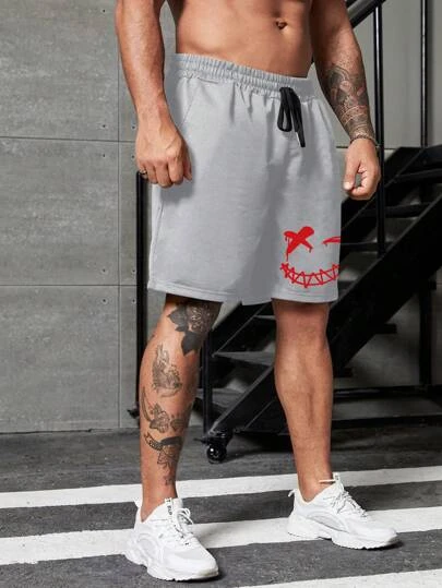 Manfinity LEGND Men Expression Print Drawstring Waist Shorts