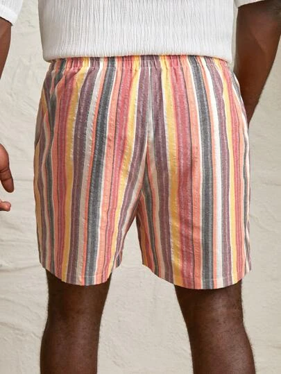 Manfinity RSRT Men Plus Striped Print Drawstring Waist Shorts