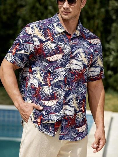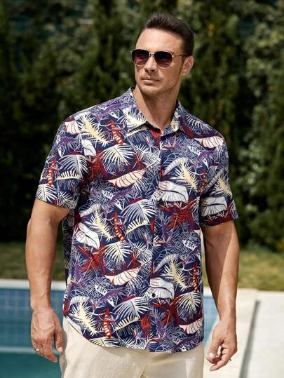 Manfinity RSRT Men Plus Tropical Print Button Up Shirt