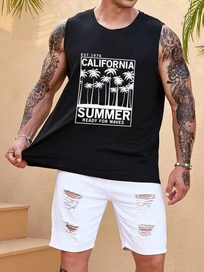 Manfinity RSRT Men Tropical & Letter Graphic Tank Top