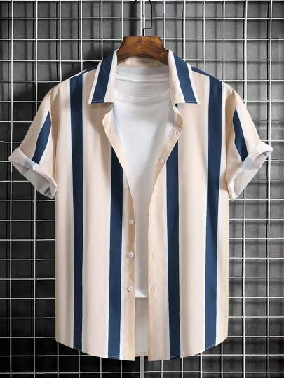 Manfinity RSRT Men Vertical Striped Button Up Shirt