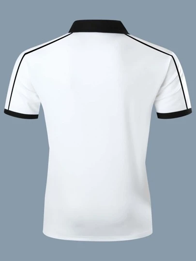 Manfinity Homme Men Letter Embroidery Contrast Trim Polo Shirt