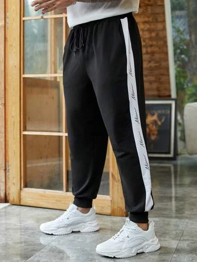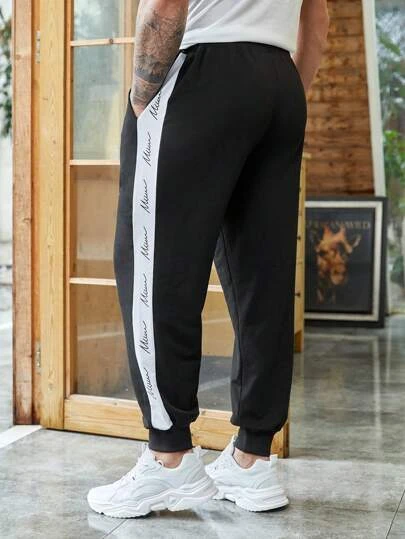 Manfinity Sporsity Men Letter Graphic Contrast Side Seam Sweatpants