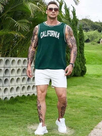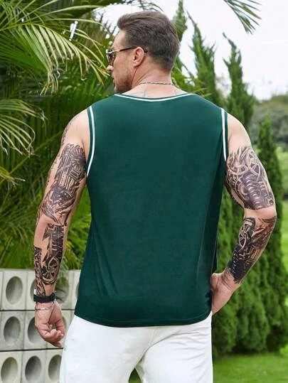 Manfinity Sporsity Men Letter Graphic Contrast Trim Tank Top